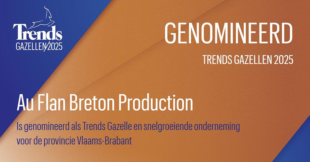 Au Flan Breton 'Production' is genomineerd als Trends Gazelle en snelgroeiende onderneming voor de Provincie Vlaams-Brabant.