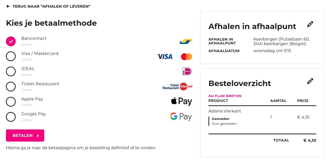 Download onze app of bekijk de webshop online. Maak je account aan, kies jou favoriete producten, betaal en haal je bestelling af in de door jou gekozen boetiek. Makkelijk.